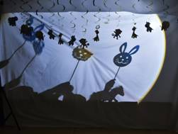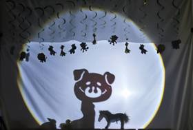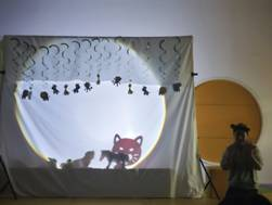 在这个充满趣味的光影剧场中,老师们用手部动作及动物模型投射出动物的影子。孩子们跃跃欲试来到背景布前,举起动物模型随着音乐摇摆、跳跃。无论是可爱的小熊,还是跳跃的小兔,孩子们的想象力就是最好的剧本。